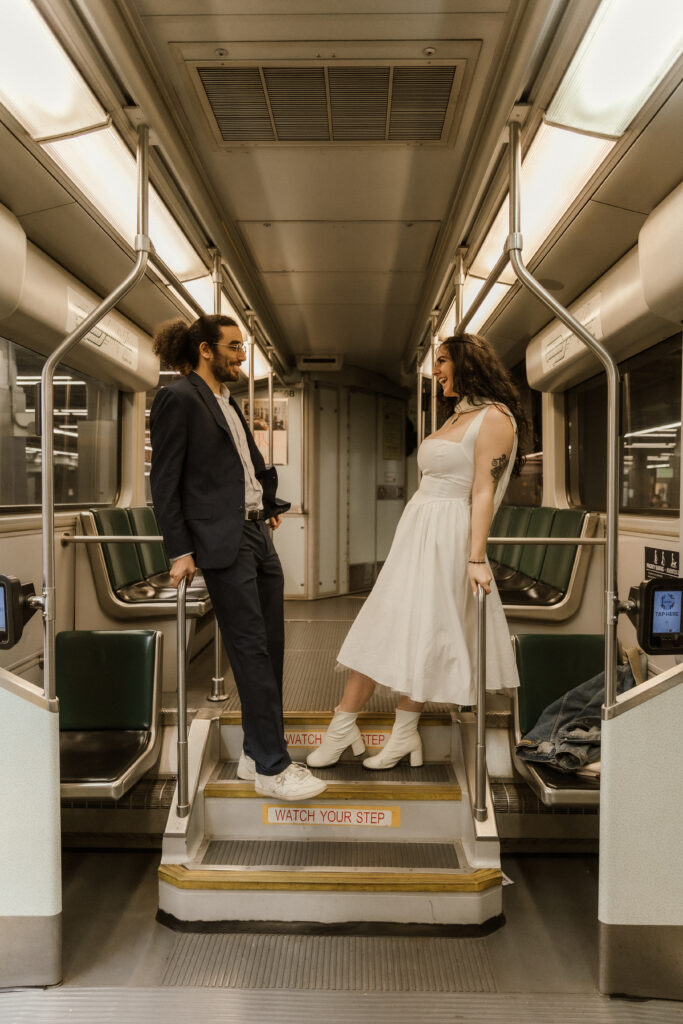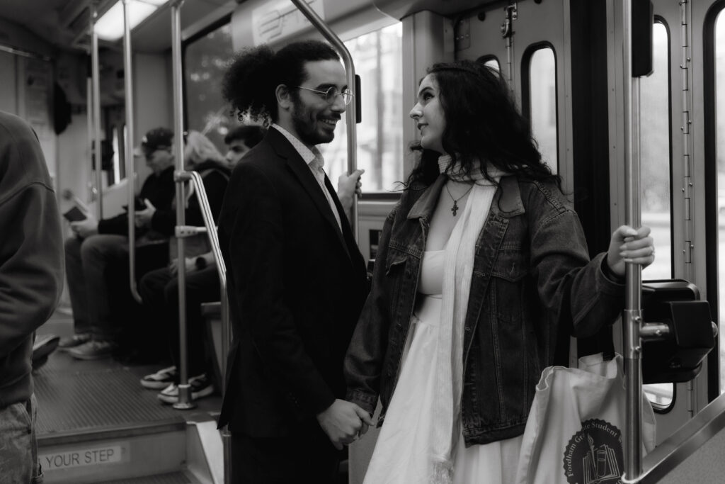 Watching the sunrise on the roof of Courtney’s apartment on Easter is one of their favorite memories together. It was the night they officially became a couple. Another is their first kiss on the Green Line platform. Both moments feel quietly monumental, much like the way they love.