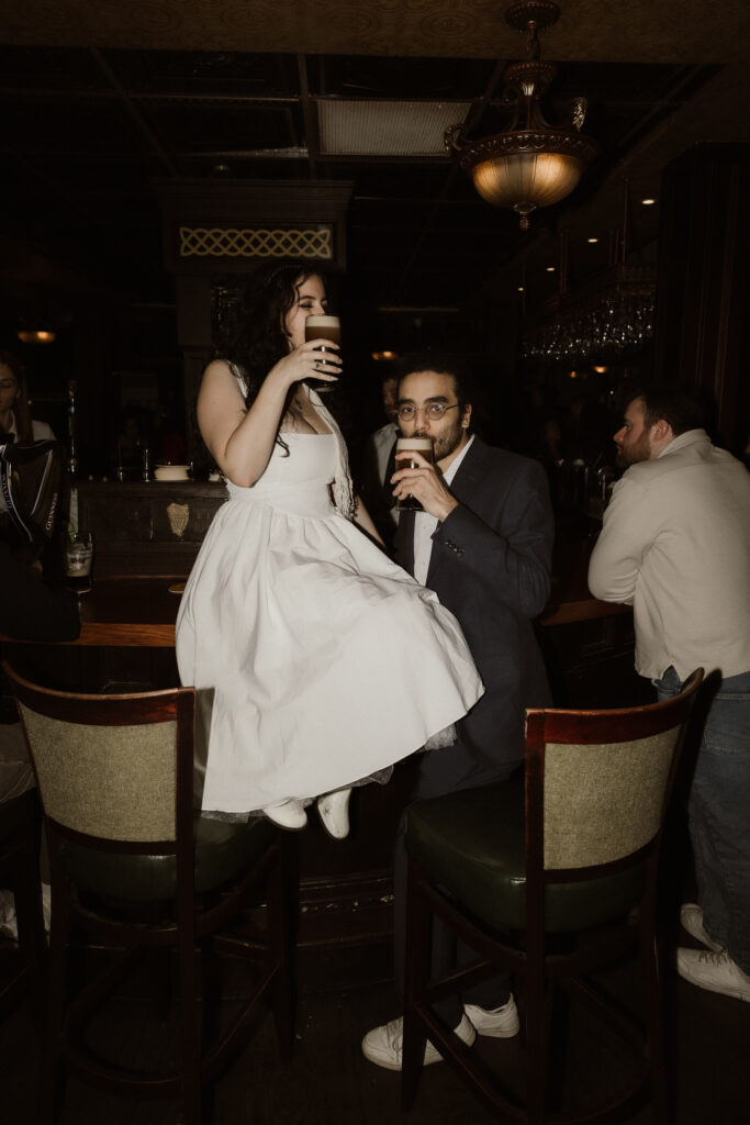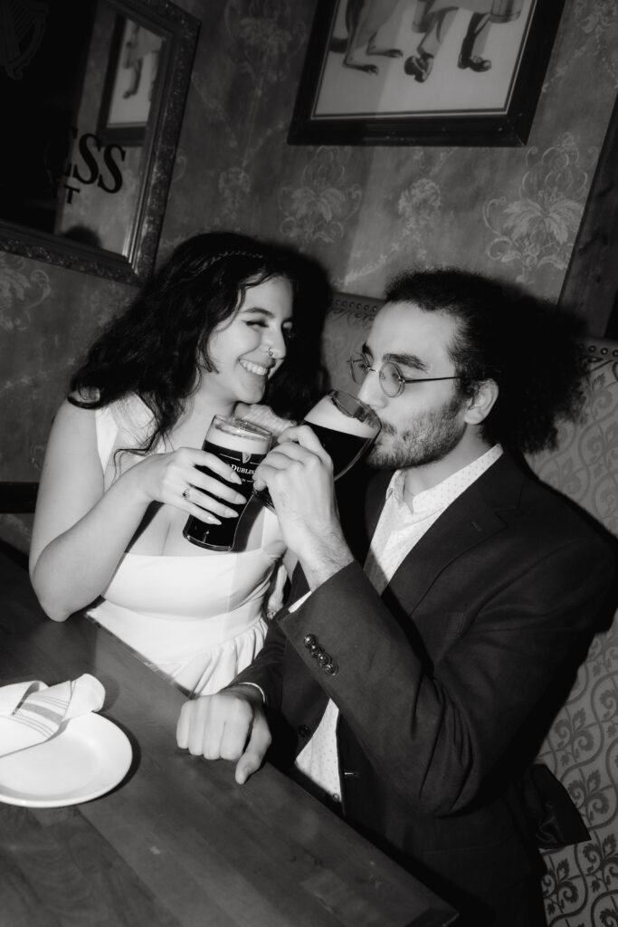 We wrapped the session at The Dubliner, which is an Irish pub across the street. Courtney and George shared a pint of Guinness there. It was the perfect ending—cozy, casual, and unmistakably them.