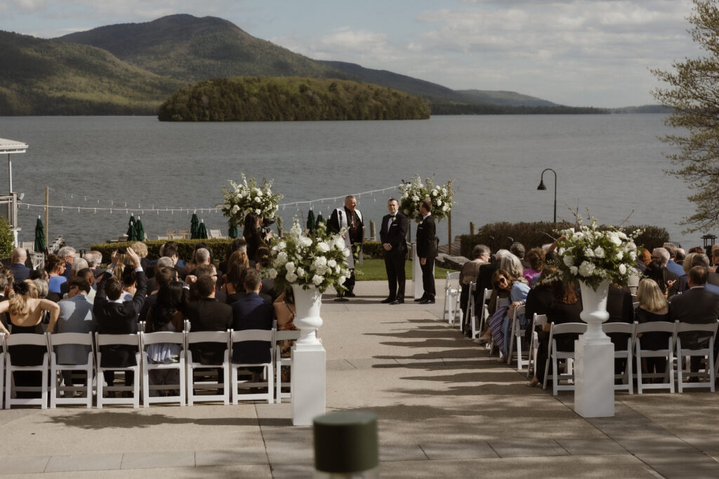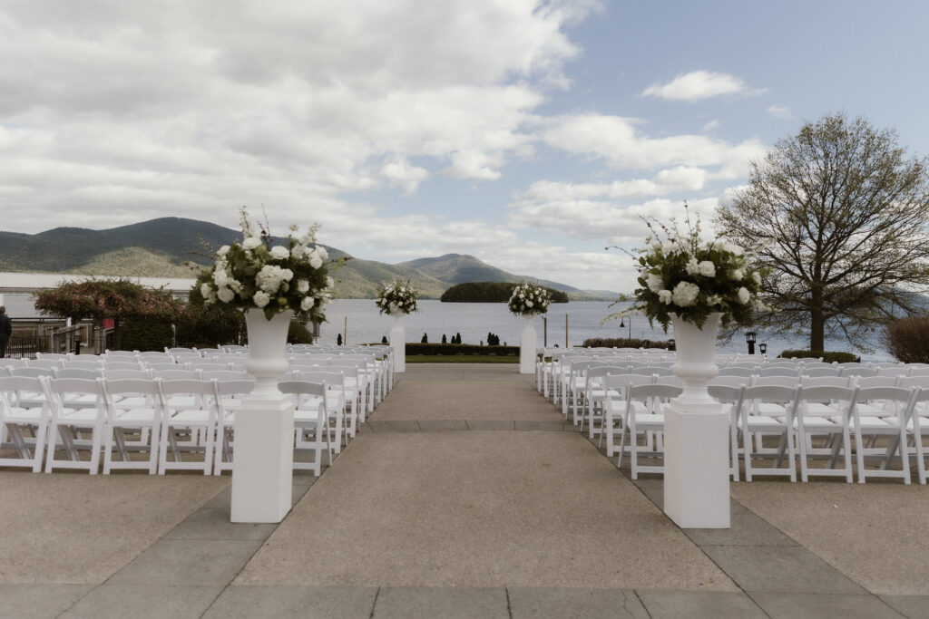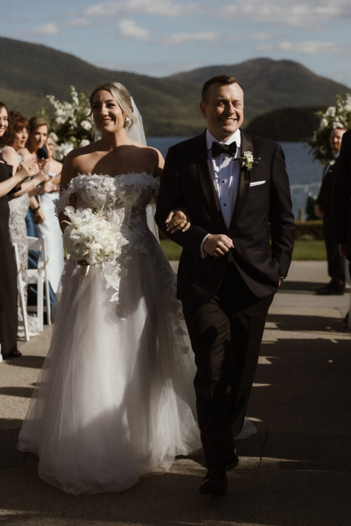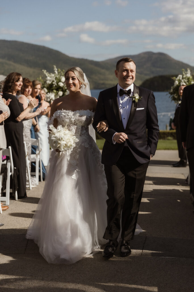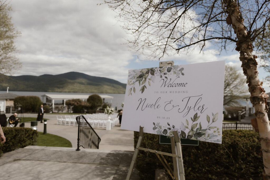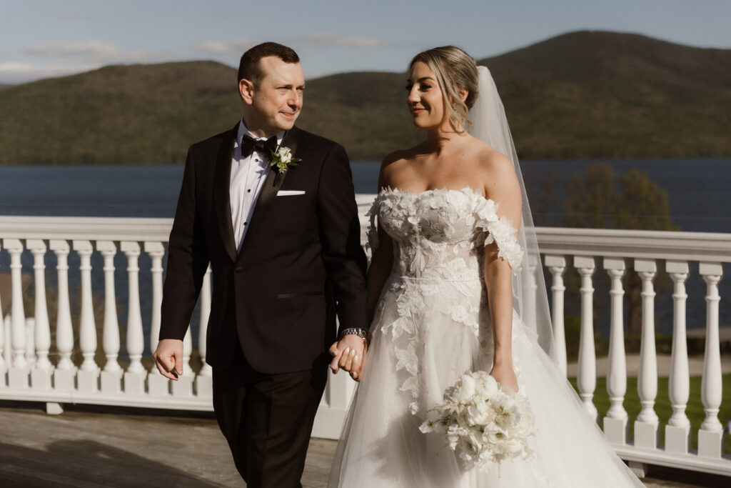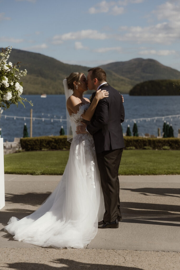 Nicole and Tyler exchanged vows during an outdoor ceremony on the Veranda Terrace at The Sagamore Resort. Lake George stretched out behind them. The ceremony began at 4:30pm and unfolded exactly as they had hoped—peaceful, romantic, and present.