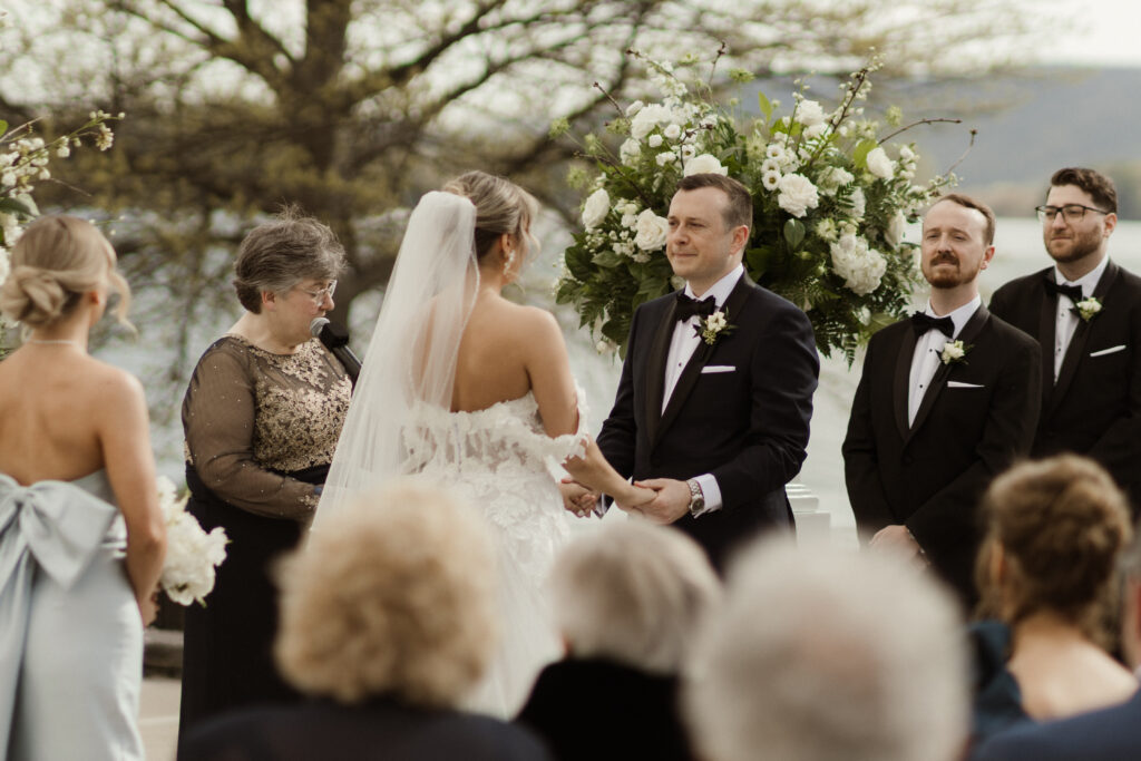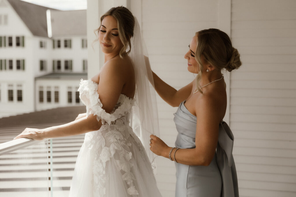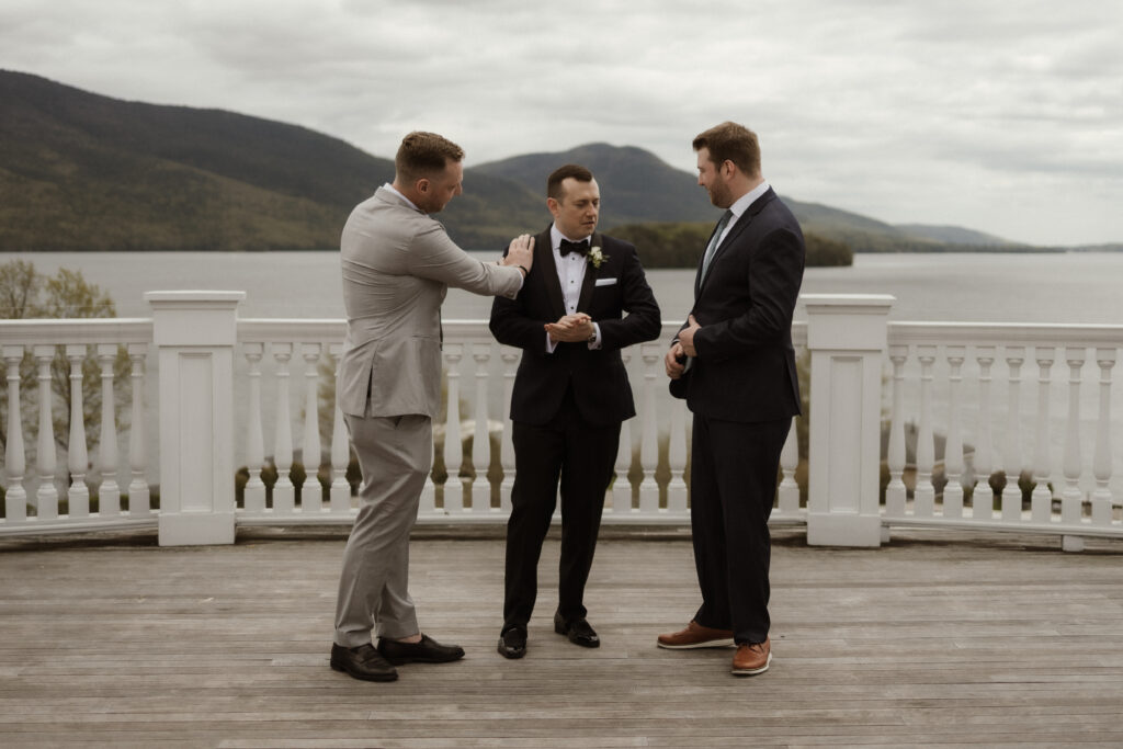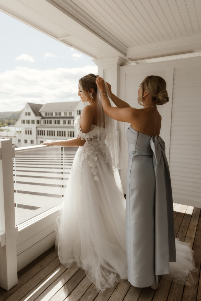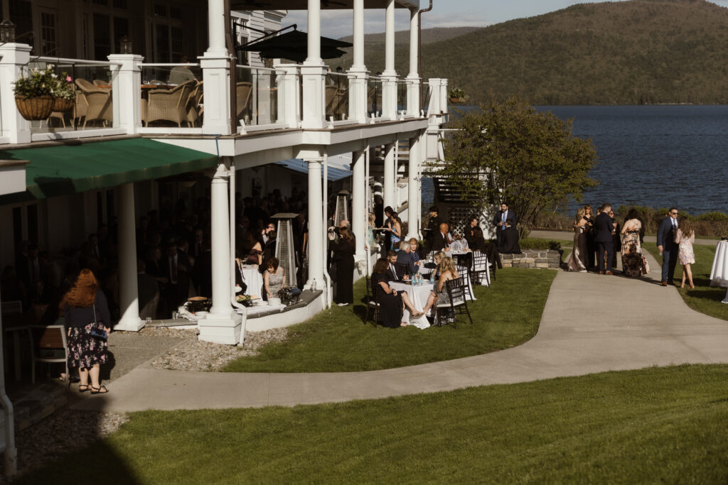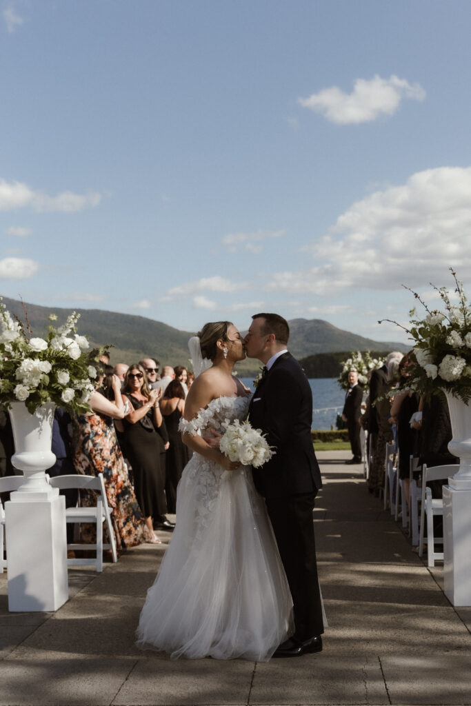 Nicole and Tyler exchanged vows during an outdoor ceremony on the Veranda Terrace at The Sagamore Resort. Lake George stretched out behind them. The ceremony began at 4:30pm and unfolded exactly as they had hoped—peaceful, romantic, and present.