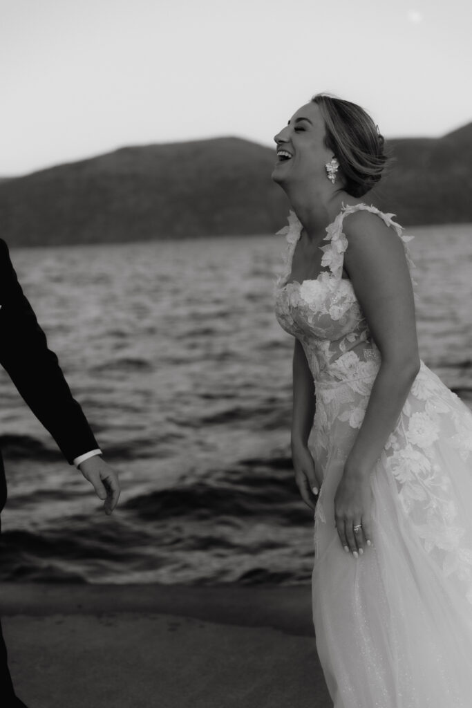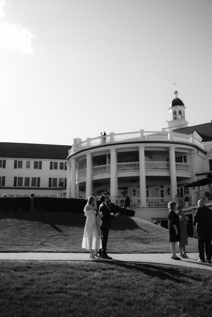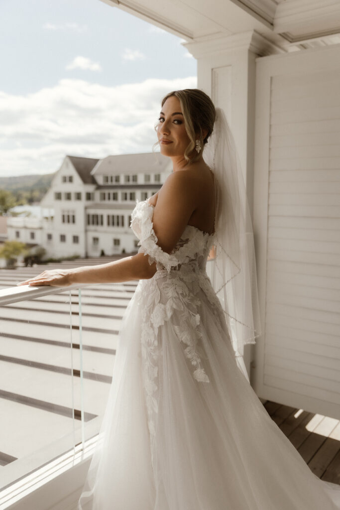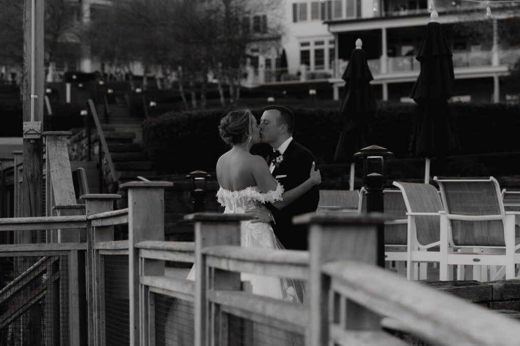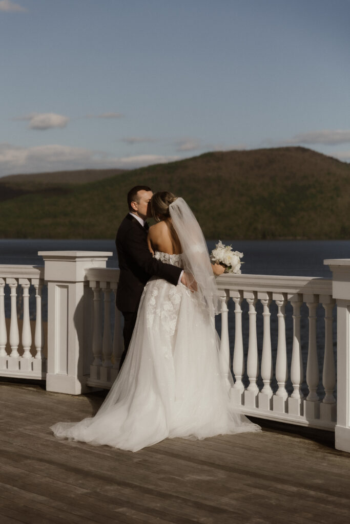 We explored several of their requested locations. These included the balcony of the main hotel, the pier, and areas along the water. These portraits felt timeless and unhurried, capturing the calm after the ceremony and the excitement before the reception.