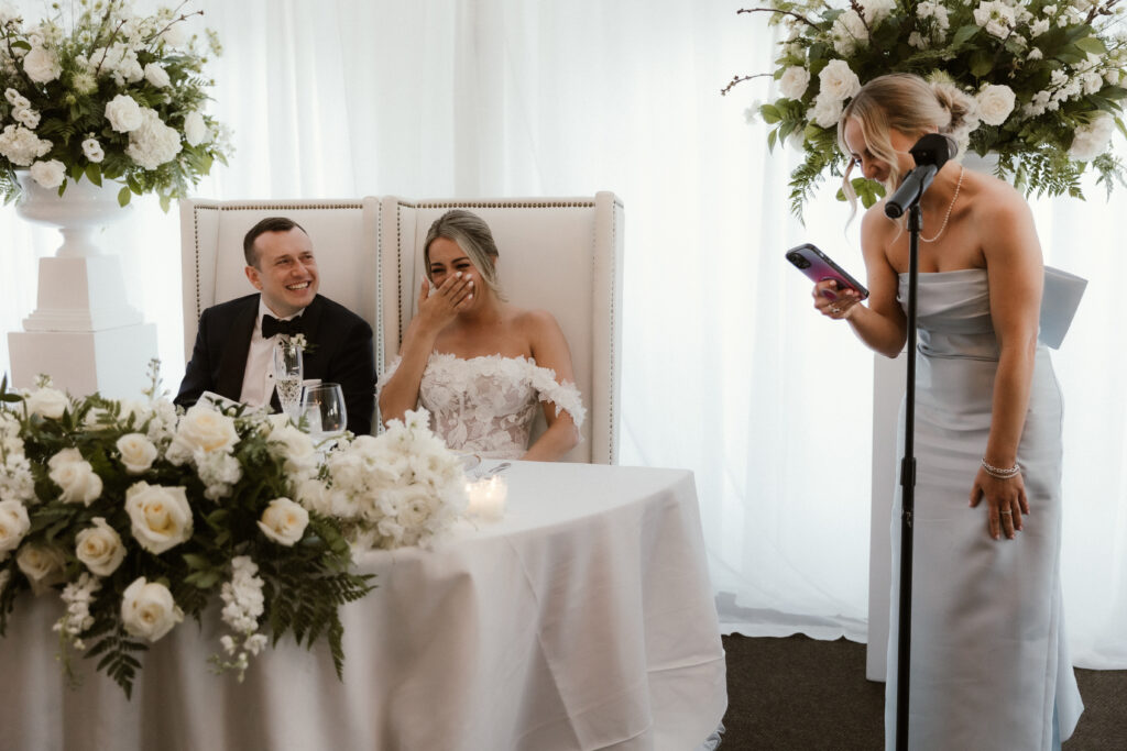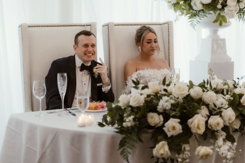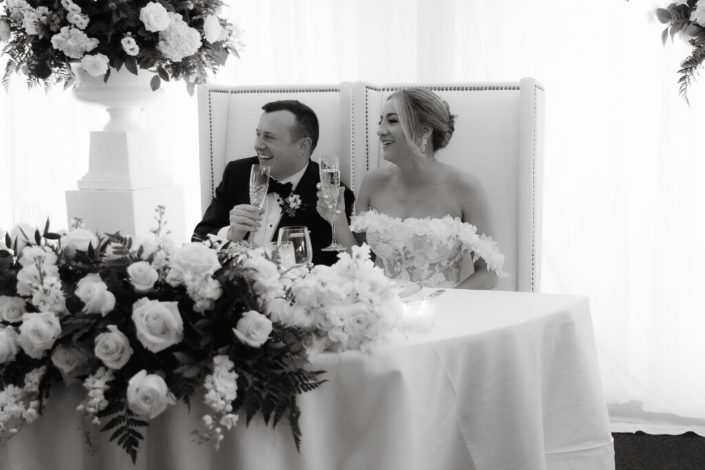 The reception began at 6:00pm on Shelving Rock Terrace, where the evening quickly shifted into celebration mode. Dinner was served at 7:00pm, followed by parent dances, heartfelt toasts, and a packed dance floor.