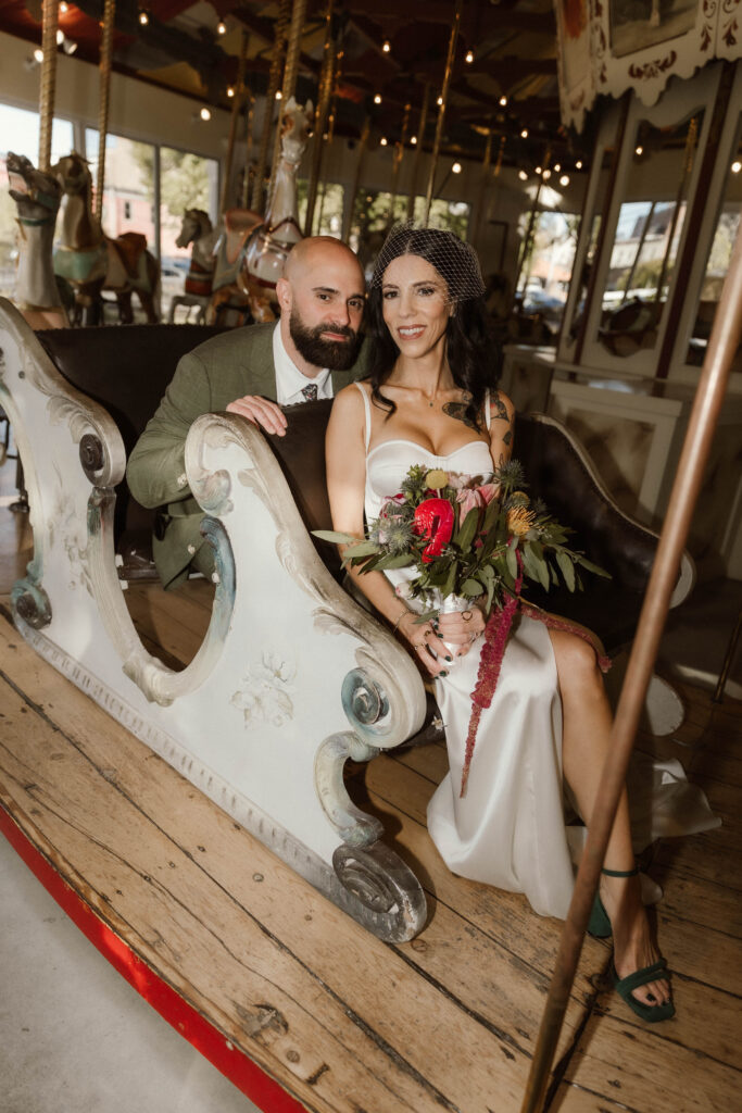 They leaned into the chaos. They climbed onto the carousel for a few rounds. The ride turned portraits into movement, laughter, and color. No posing. Just fun.