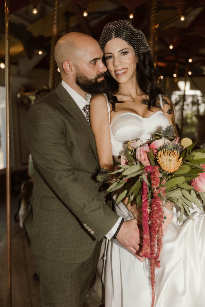 So the day did not unfold in one place. It moved from a quiet hotel room. Then, it shifted to a surprise first look. Next, it transitioned to a carousel spinning in the background of someone else’s wedding. Finally, it moved into a multi-level nightclub where the party never slowed down.